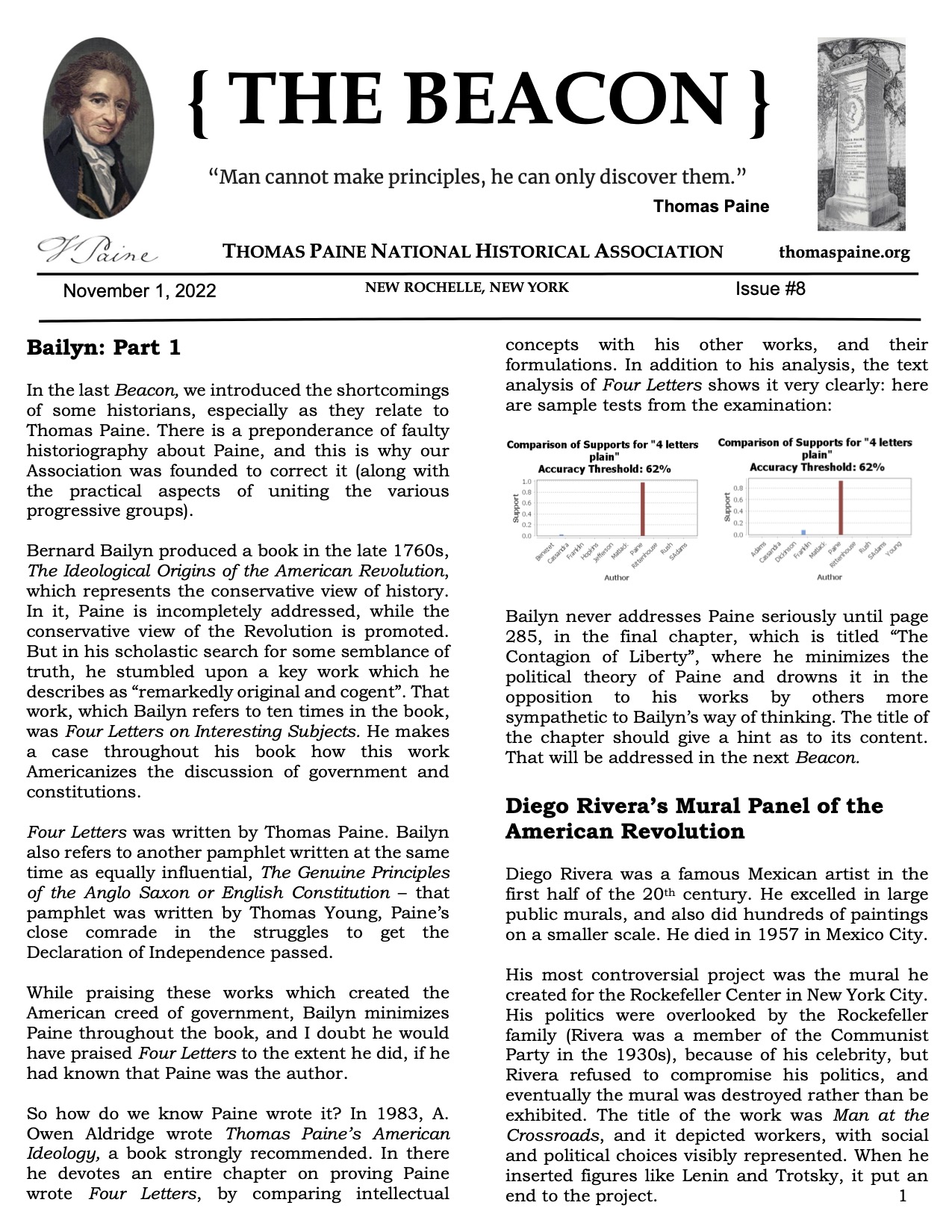 In the last Beacon, we introduced the shortcomings of some historians, especially as they relate to Thomas Paine. There is a preponderance of faulty historiography about Paine, and this is why our Association was founded to correct it (along with the practical aspects of uniting the various progressive groups).